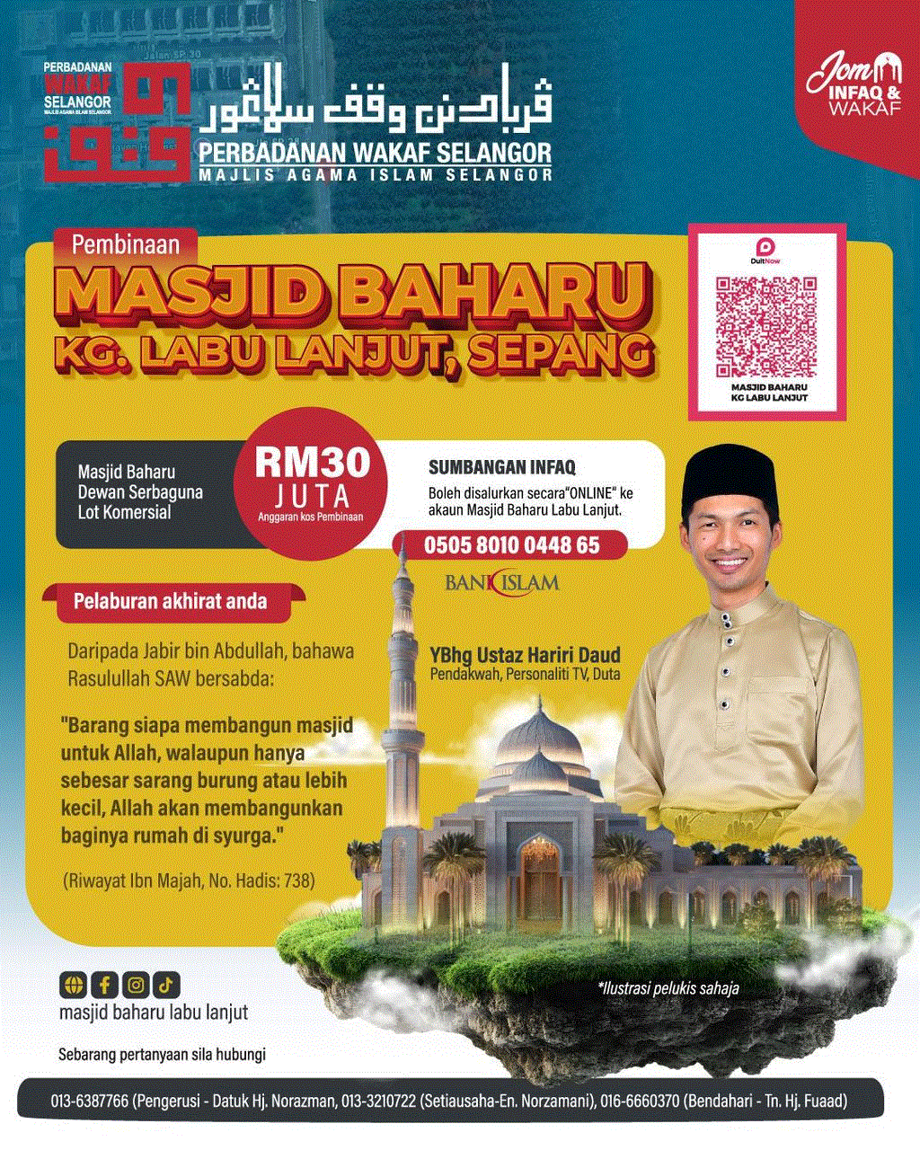 Bersama menyumbang untuk pembinaan masjid baru labu lanjut.